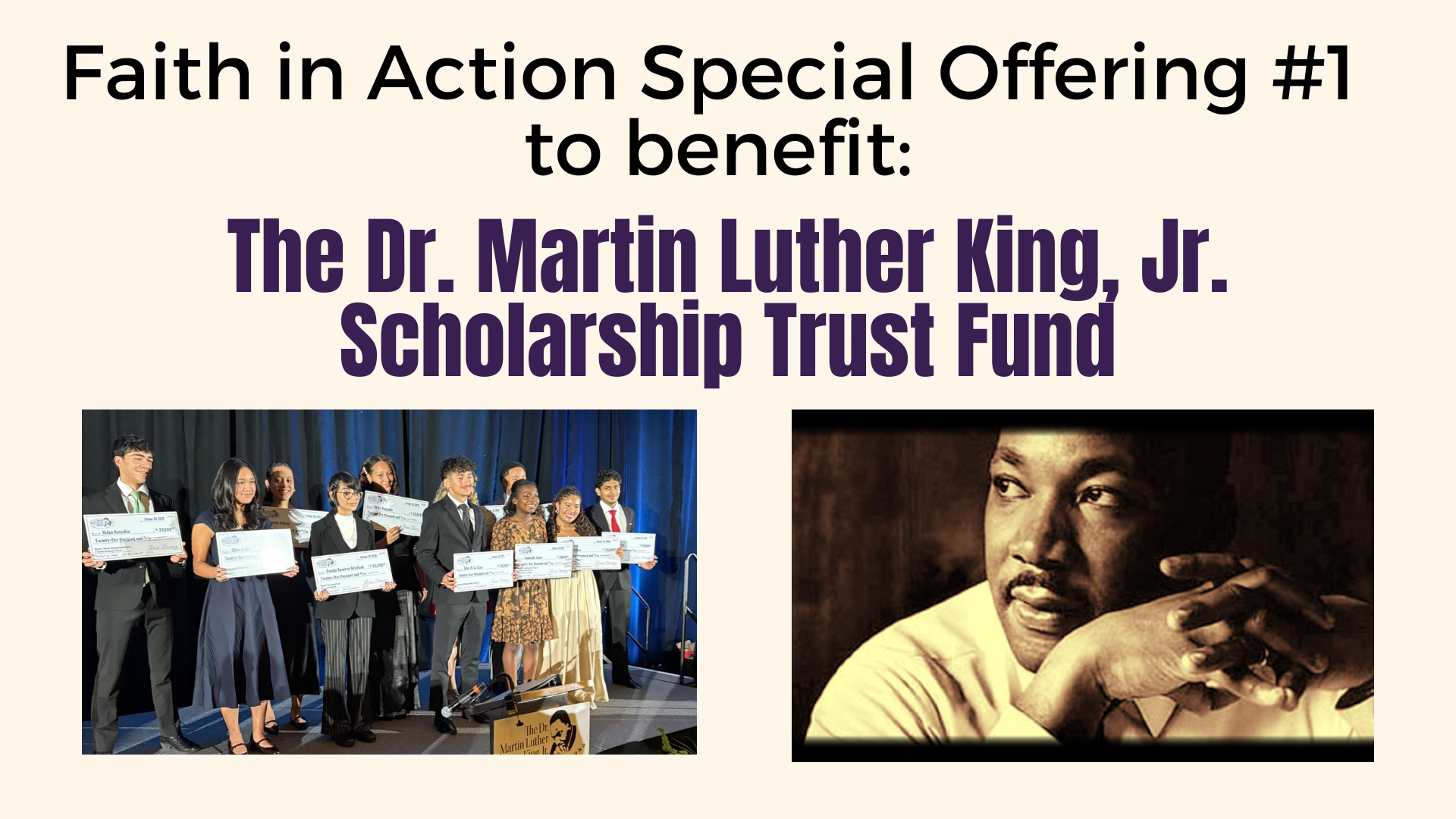 MLK Scholarship Special Offering will take place during February. Stop by the table during coffee hour to donate in support of the Educational Scholarship Trust Fund, or give online below.